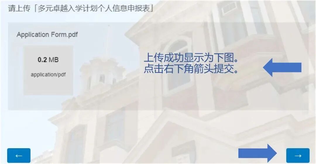5) 其中申请编号即报名内地本科生入学计划时的十位数申请编号(例:15XXXXXXXX),填妥后点击右下角箭头继续。
