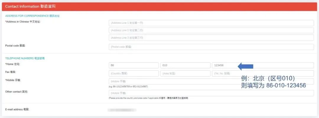 3)住宅电话请填写家庭固定电话号码,所有于内地报名的学生请填写中国国家号:86。