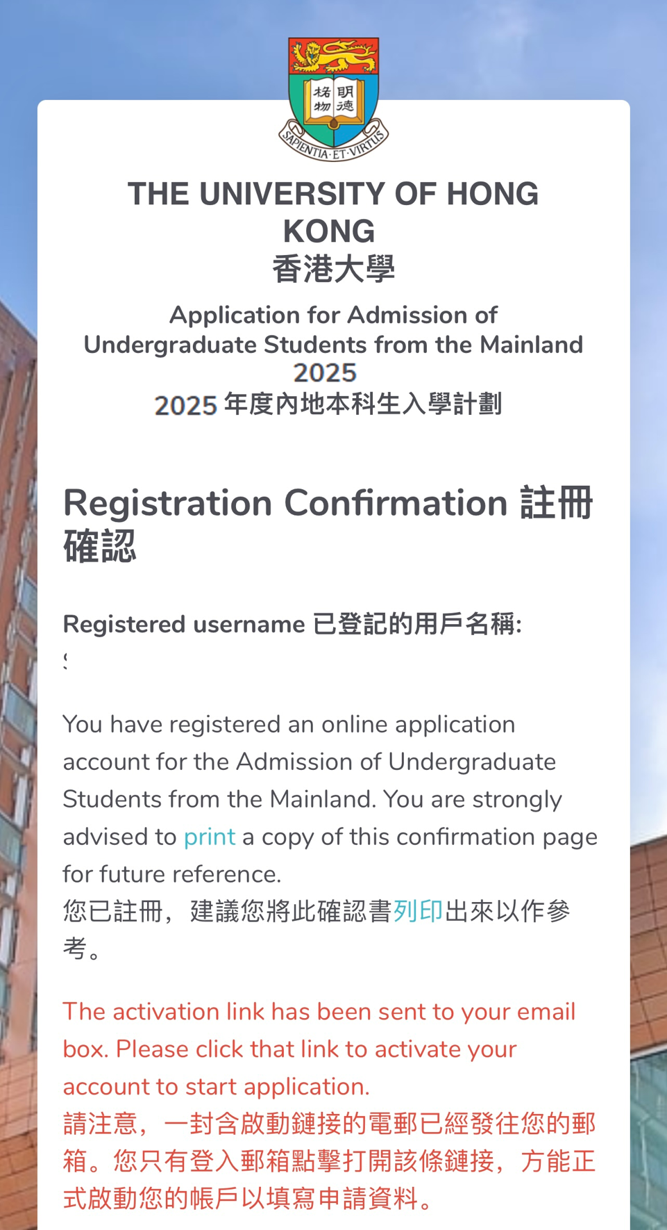 *如没有收到邮件,请检查垃圾邮件,并将 prcua@hku.hk 添加入邮箱白名单。如仍无法解决,请更换邮箱地址重新注册。