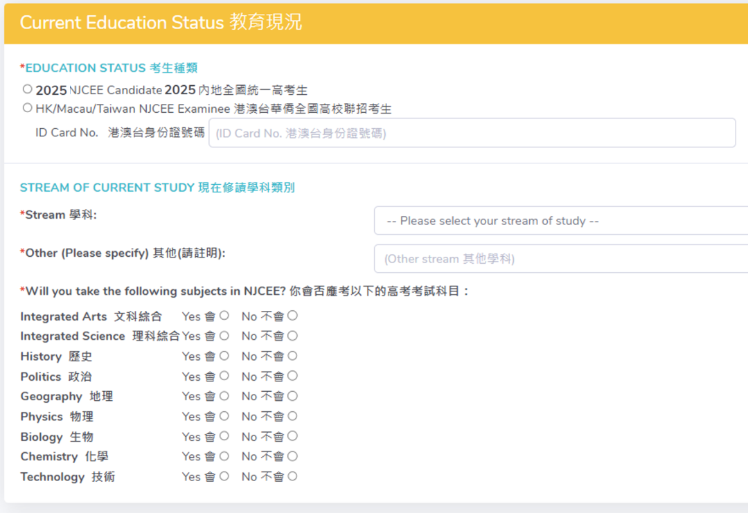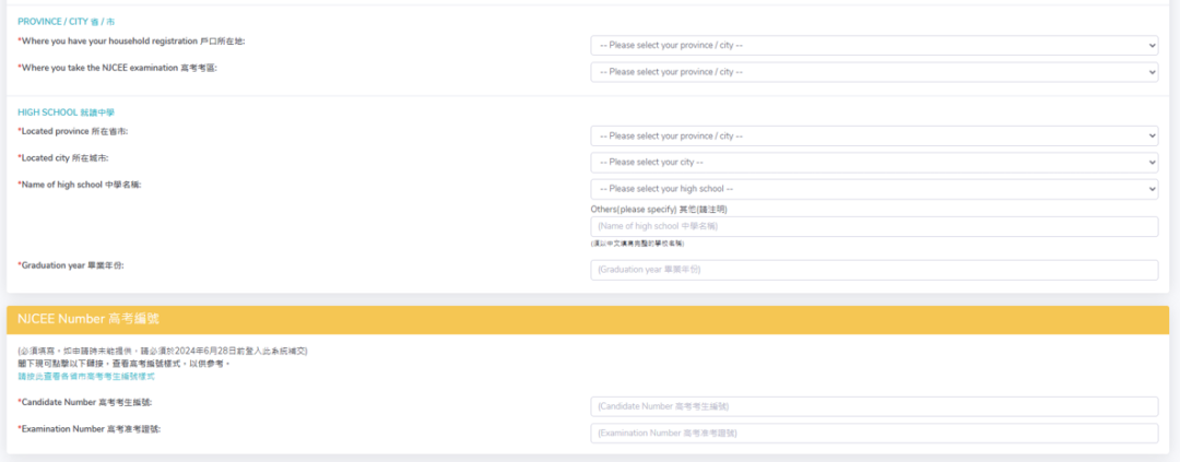 * 如未知高考编号,可先不填,但务必于请2025年6月28日中午12点前登入系统补齐。